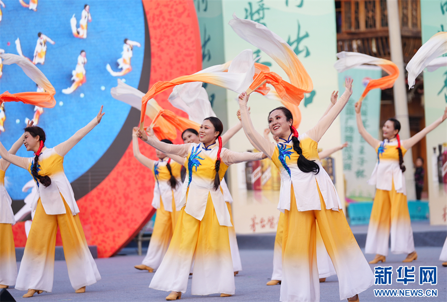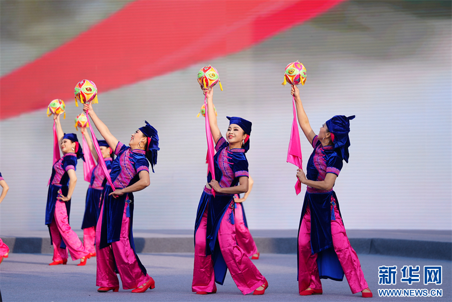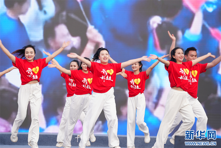 总决赛现场,参赛代表队进行广场舞比赛。新华网发(韦贵金 摄)pagebreak