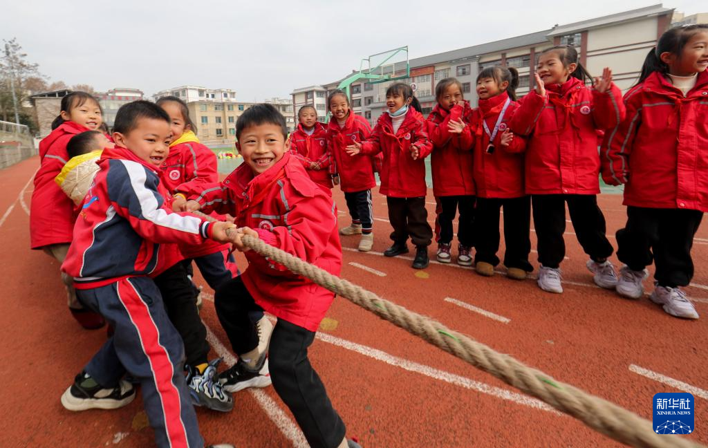 12月26日,在贵州省开阳县第一小学,学生在大课间活动中进行拔河比赛。新华社发(袁福洪摄)pagebreak