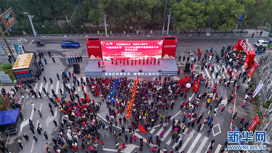 12月29日,2024年全国新年登高健身大会贵州主会场活动在遵义市凤凰山国家森林公园举行(无人机照片)。