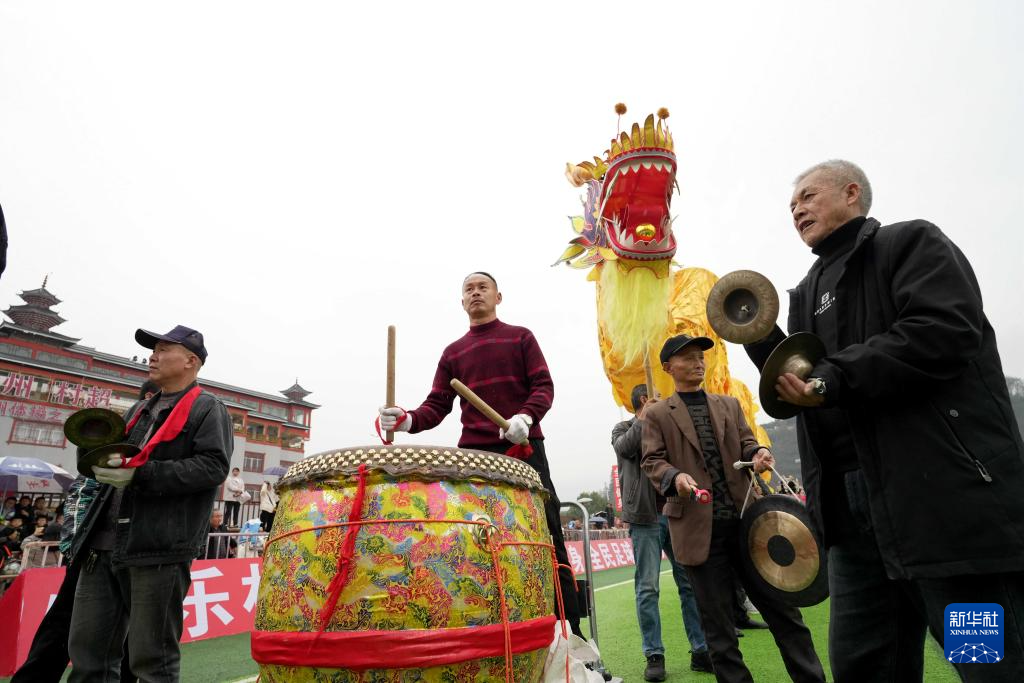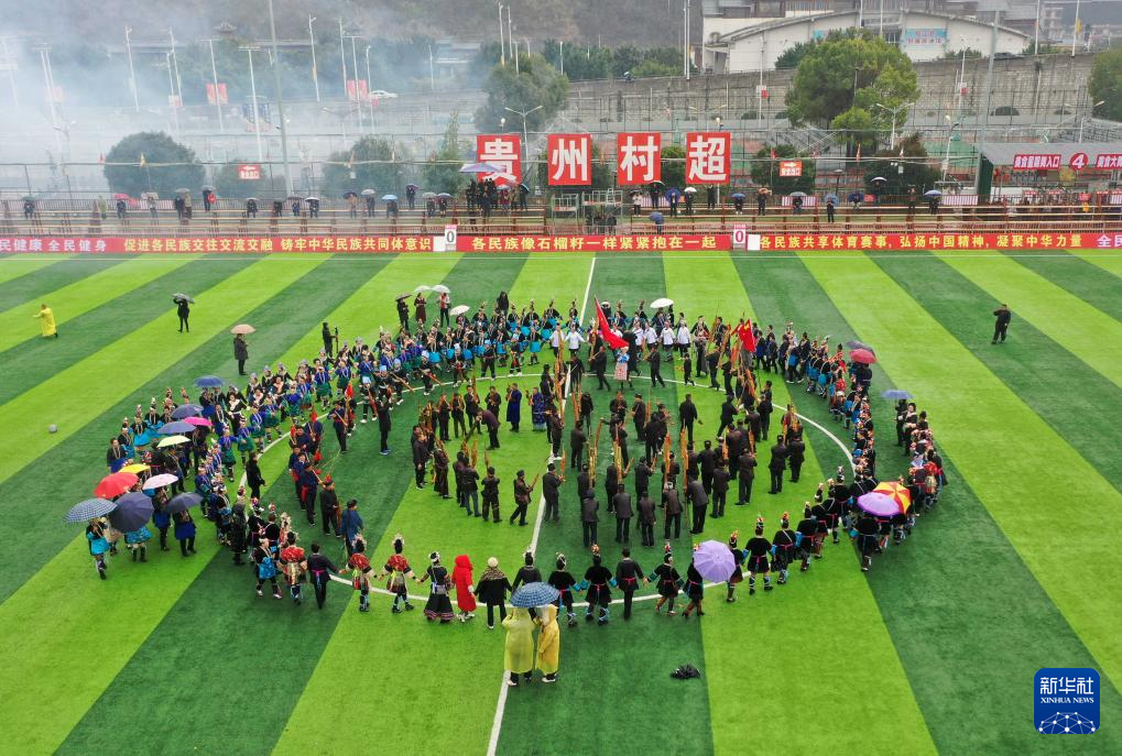 1月6日,人们在2024年贵州“村超”预选赛开幕式上表演民族节目(无人机照片)。