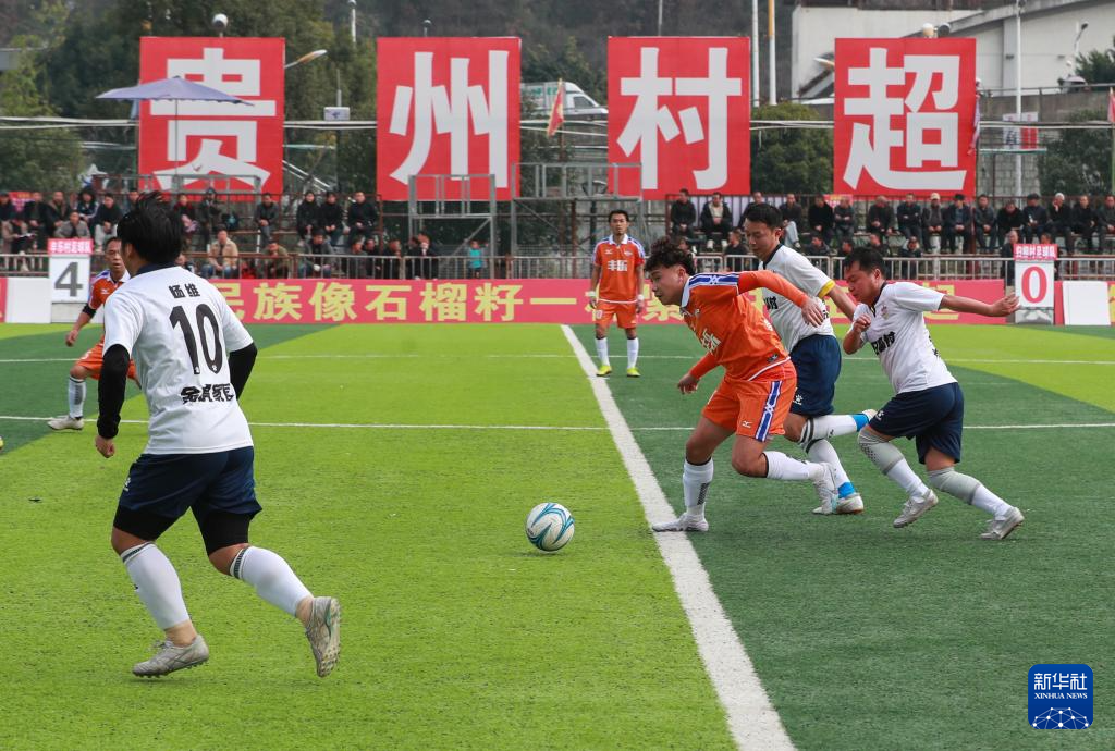 1月6日,在贵州省榕江县“村超”球场,两支村级球队在进行比赛。新华社发(卢忠南摄)