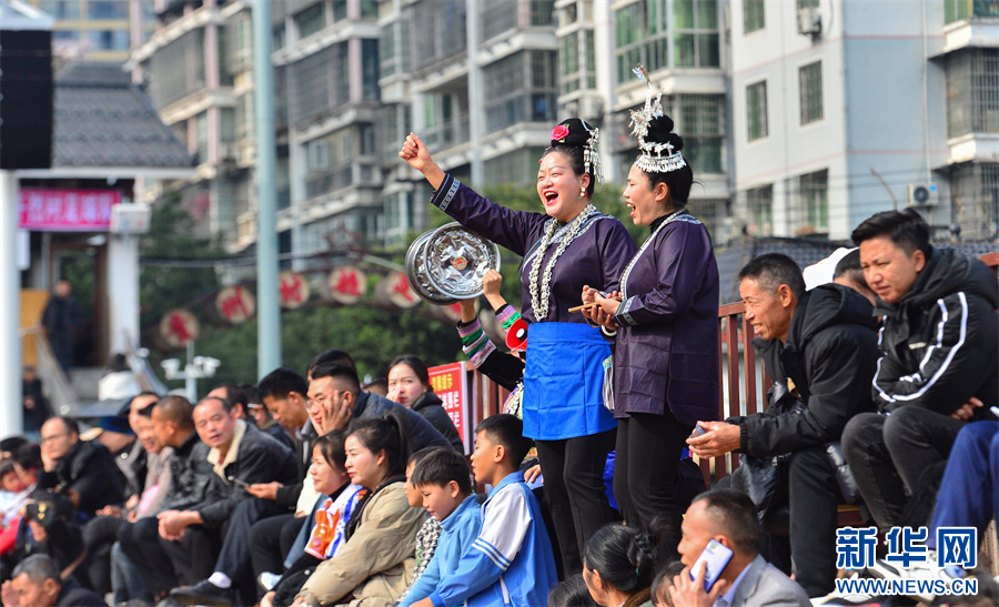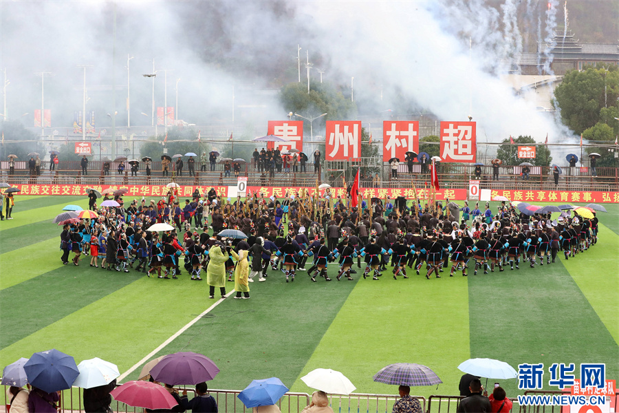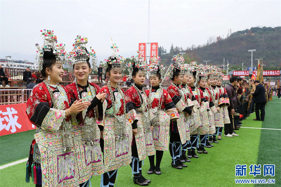 1月6日,在贵州省黔东南苗族侗族自治州榕江县“村超”足球场,拉拉队入场准备表演民族文艺节目。新华网发(李长华 摄)pagebreak