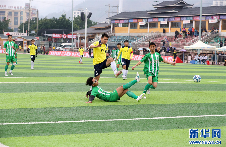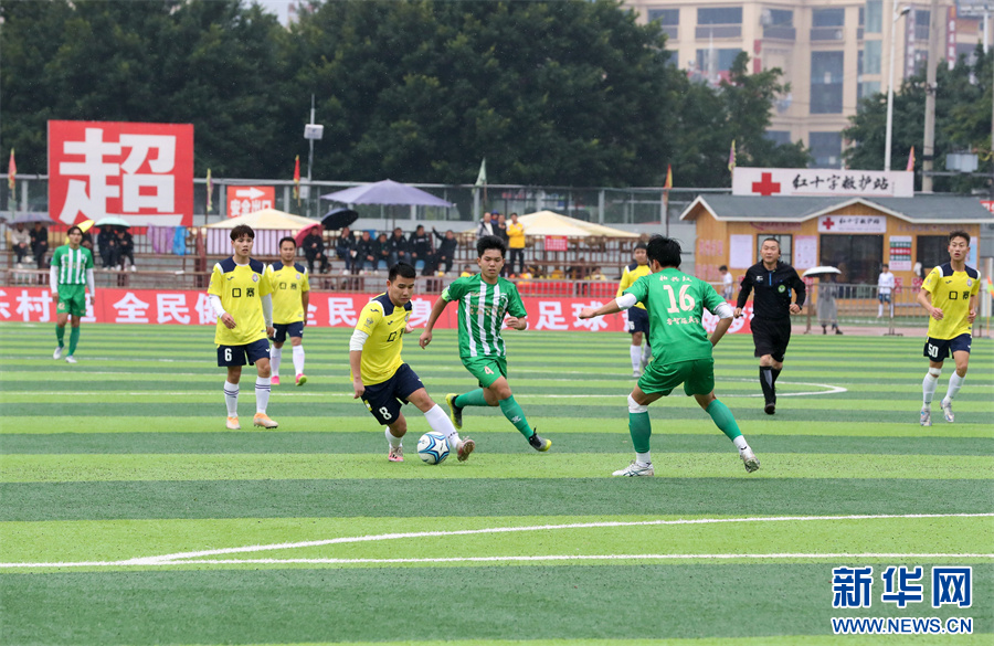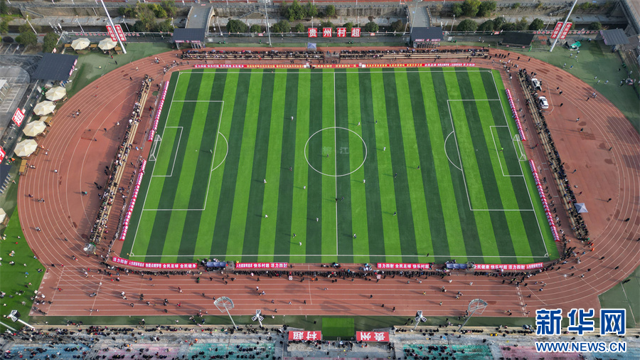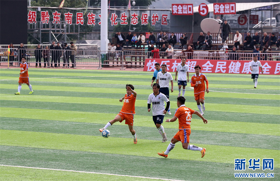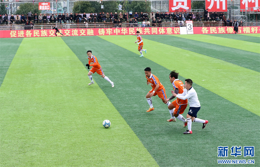 1月6日,在贵州省黔东南苗族侗族自治州榕江县“村超”足球赛场,两支村级球队在进行比赛。新华网发(李长华 摄)pagebreak