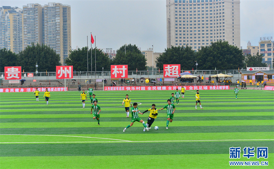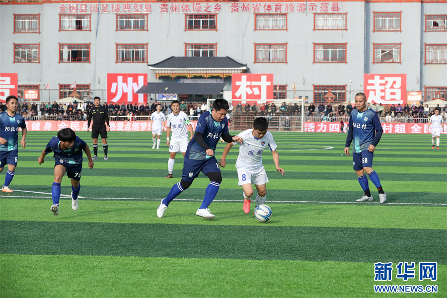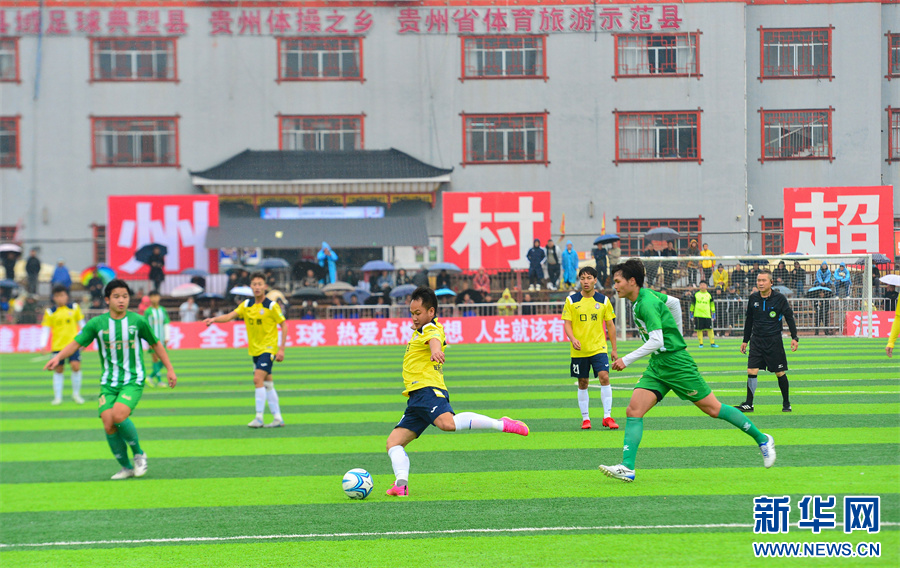 1月6日,在贵州省黔东南苗族侗族自治州榕江县“村超”足球赛场,两支村级球队在进行比赛。