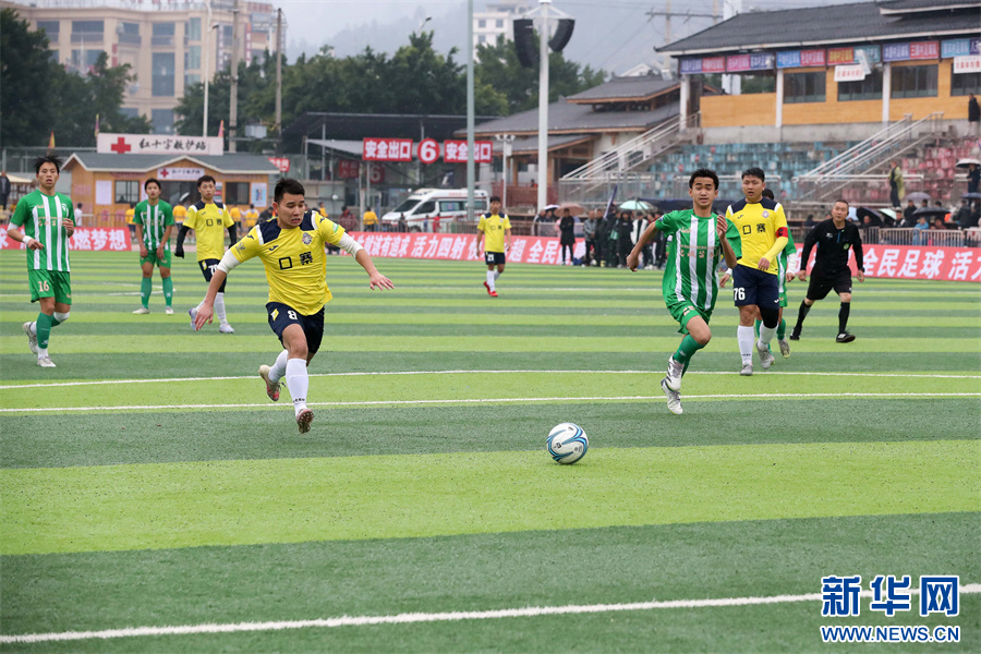 1月6日,在贵州省黔东南苗族侗族自治州榕江县“村超”足球赛场,两支村级球队在进行比赛。新华网发(卢忠南 摄)pagebreak
