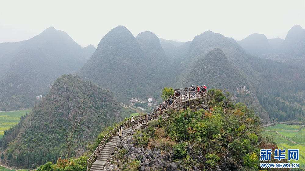 1月10日,游客在万峰林景区游玩。新华网 周远钢 摄