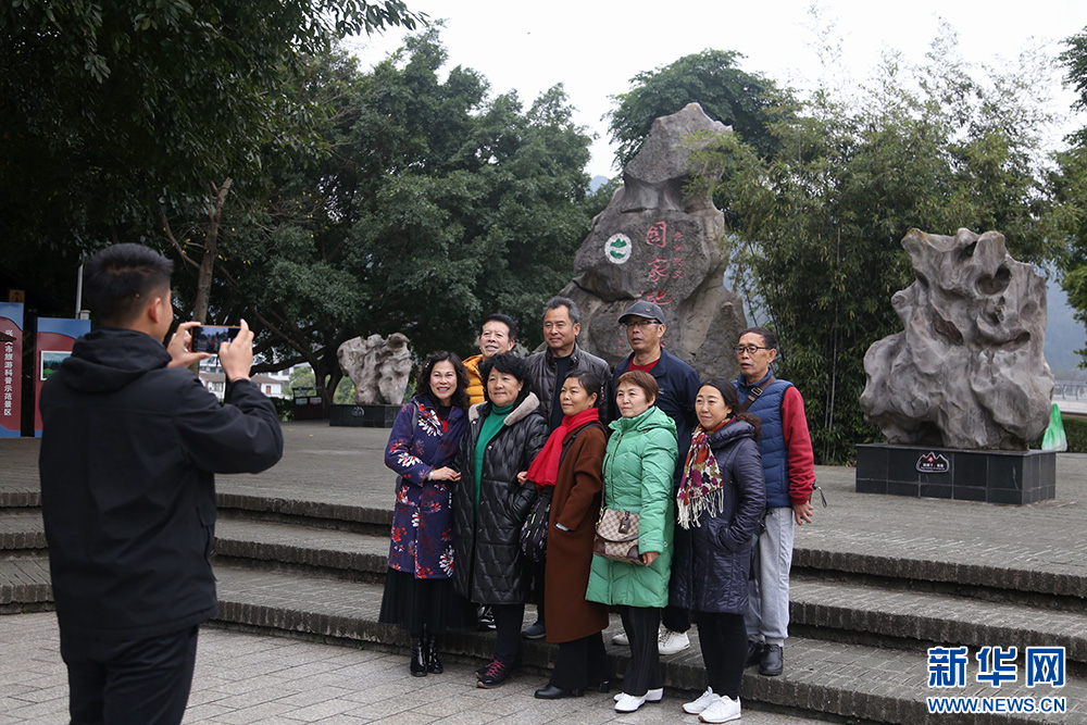 1月10日,游客在万峰林景区合影留念。新华网 周远钢 摄pagebreak