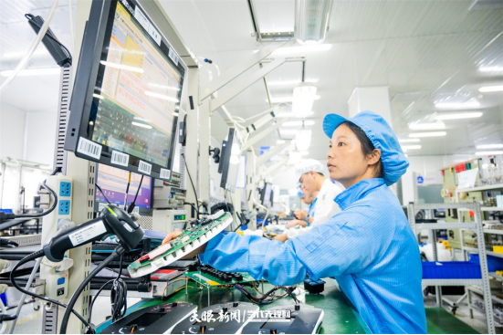 贵阳永青仪电科技有限公司仪表车间,工人正在生产线上作业。何晓璇 摄