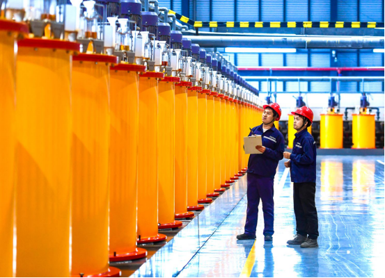 工人在位于贵州大龙经济开发区的中伟新材料股份有限公司萃取车间巡查设备运行情况。贵州日报天眼新闻记者 陈慧 摄