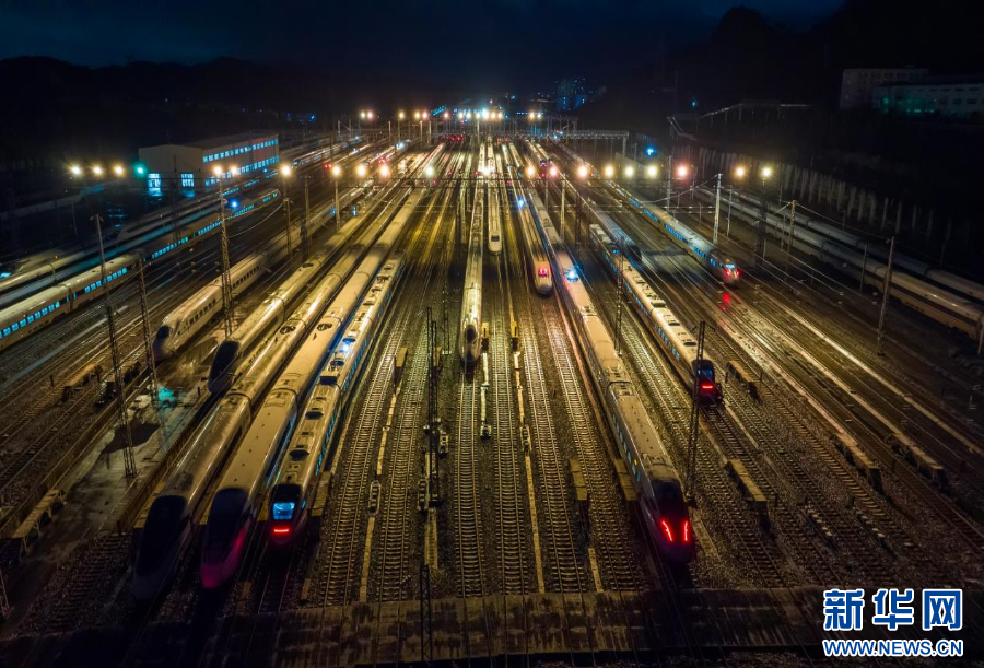 26日凌晨,贵阳北动车运用所内灯火通明,200余名动车组机械师正在对动车组进行全面精检细修,对动车组防寒加热设备状态进行出库前的最终确认,确保动车组“健康”上线运行,全力以赴守护春运安全。
