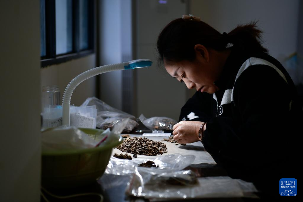 1月24日,在贵州省文物考古研究所穿洞工作站,考古工作人员对筛出遗物进行分选。新华社记者 杨文斌 摄pagebreak