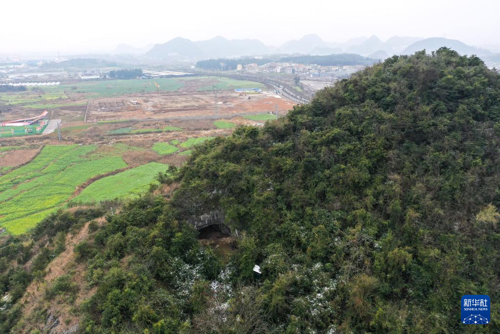 这是1月24日拍摄的贵州普定穿洞遗址北洞口(无人机照片)。新华社记者 杨文斌 摄pagebreak