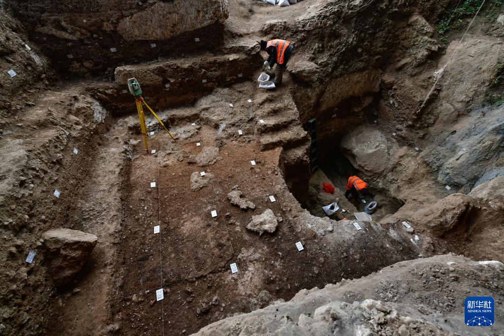 1月24日,工人对贵州普定穿洞遗址早年发掘区进行清扫。新华社记者 杨文斌 摄pagebreak