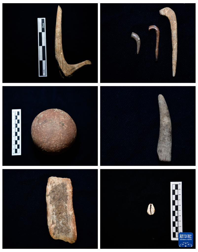 拼版照片:这是在贵州省文物考古研究所穿洞工作站拍摄的穿洞遗址出土的骨角制品和石制品等考古标本(1月24日摄)。新华社记者 杨文斌 摄pagebreak