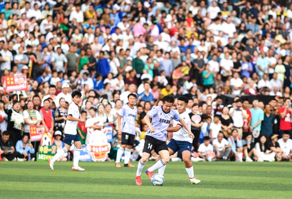 在2023年的“村超”足球比赛中,20支参赛队的球员来自各行各业,有建筑工人、有卖菜小贩、有烧烤摊老板、有室内装修设计师、有教师、有学生……出于对足球运动的热爱,大家临时组成参赛队,代表着自己的村出战。穿上球衣,他们是为荣誉而战的足球队员;脱下球衣,他们是为生活各自奔忙的普通人。虽然其中很多人已步入中年,但他们依然坚持在绿茵场上奋力奔跑,不知疲倦。
