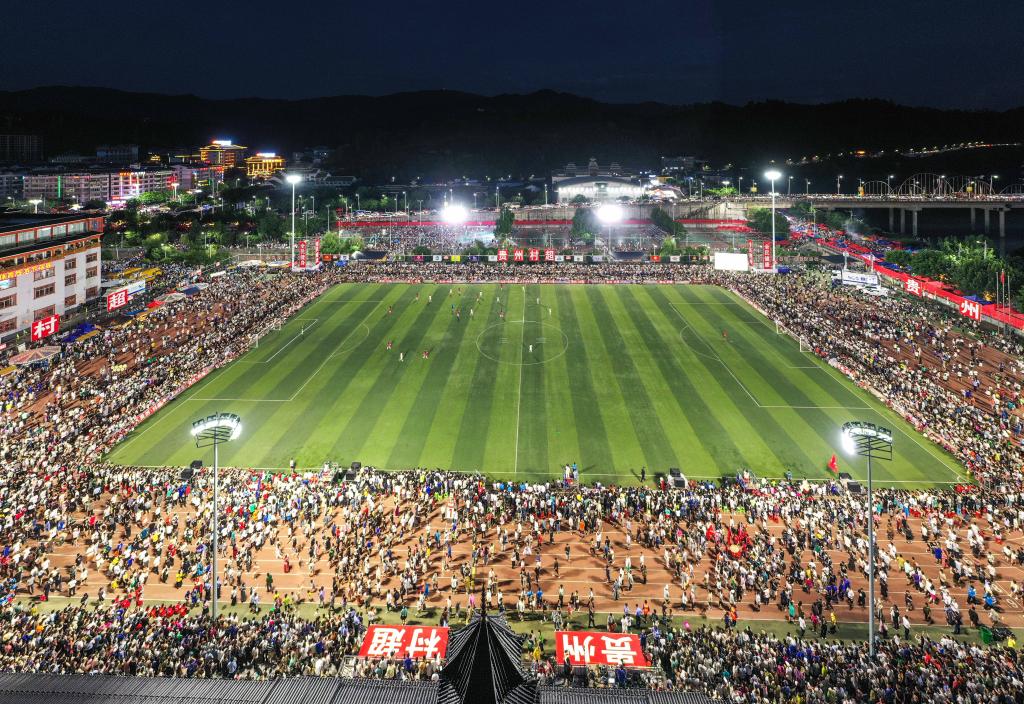 ↑2023年6月17日拍摄的贵州“村超”足球比赛现场。