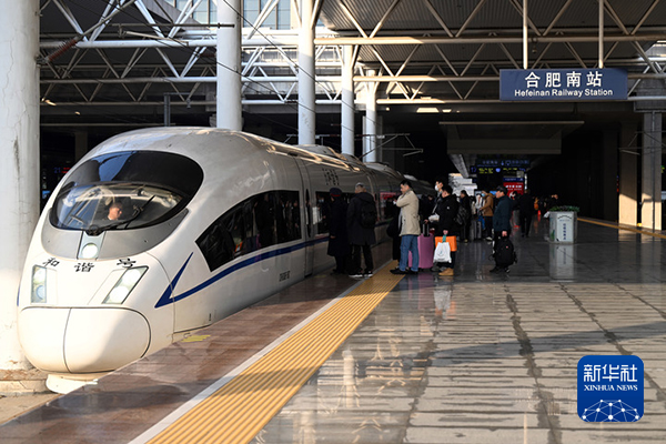 1月26日,旅客在合肥南站乘车。当日,2024年春运启动。新华社记者 周牧 摄