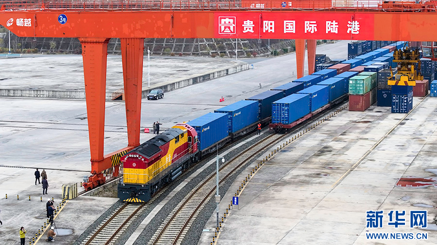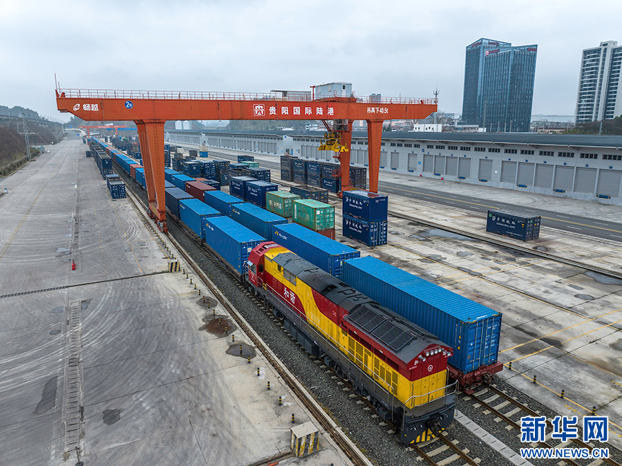2月8日,中欧班列列车驶出贵阳国际陆港都拉营站。新华网发