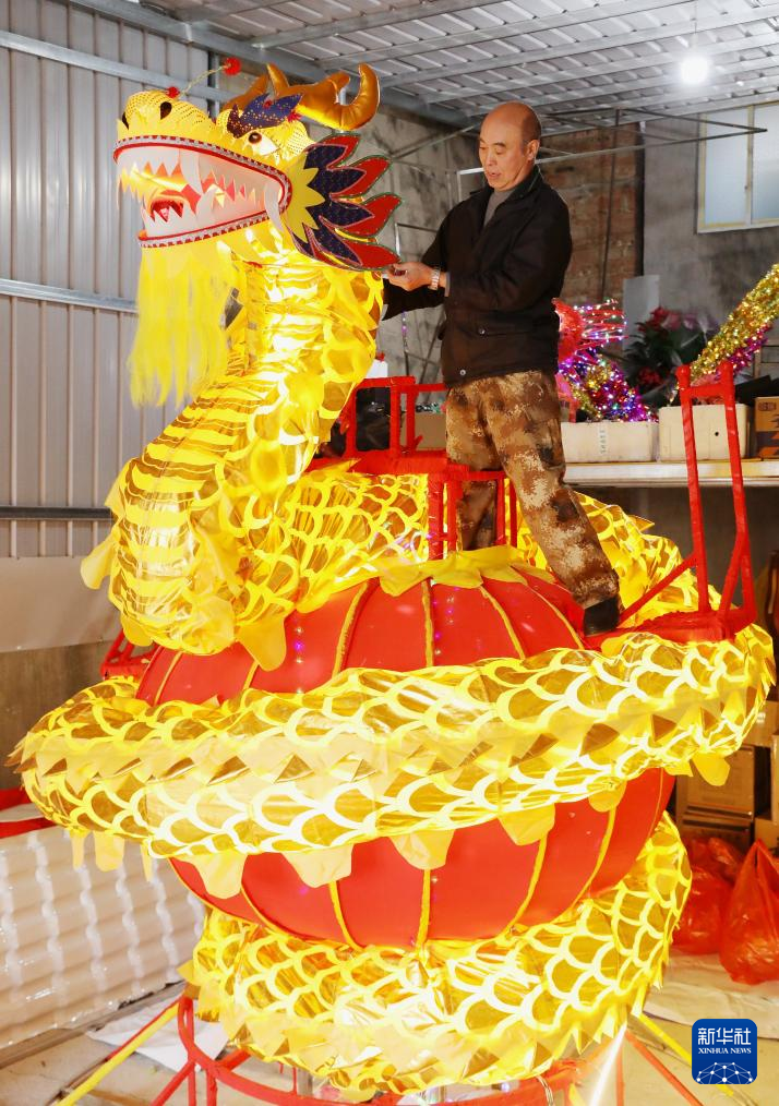 2月12日,在贵州省黔东南苗族侗族自治州施秉县城东社区,民间艺人抓紧制作创意龙花灯。新华社发(邰胜智 摄)pagebreak
