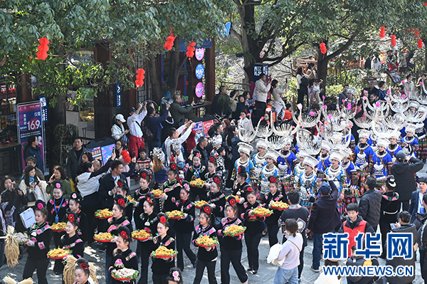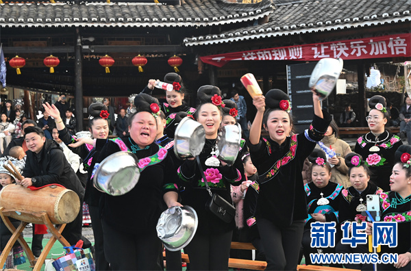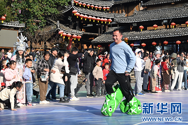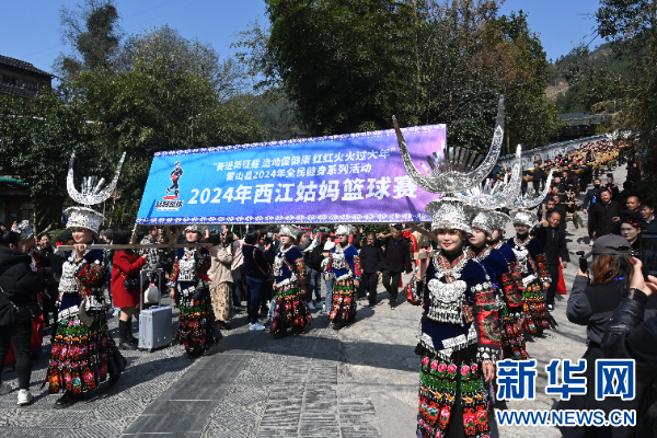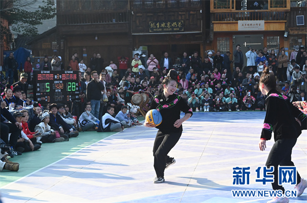 新华网贵阳2月15日电 2月13日,贵州省黔东南苗族侗族自治州雷山县“姑妈篮球赛”在国家4A级旅游景区西江千户苗寨开打。本次比赛由西江村自发举办,以“快乐、美丽”为主题,将持续到2月19日。
