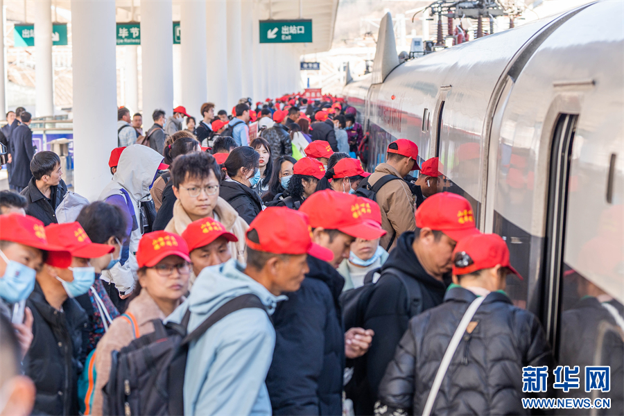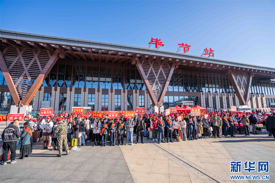 当日,来自贵州省毕节市的556名务工人员,从成贵高铁毕节站免费搭乘G3707次列车前往广东省广州市返岗务工,这是今年春节后毕节市通过粤黔东西部劳务协作开行的首趟免费“点对点”务工专列。