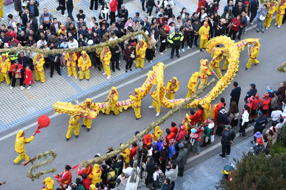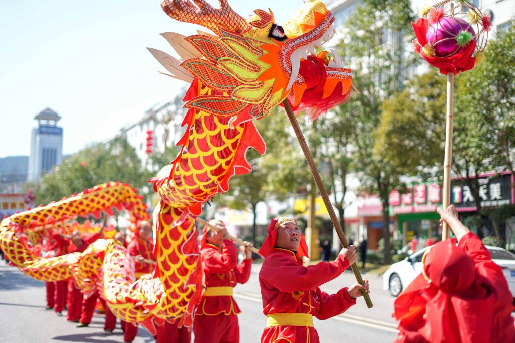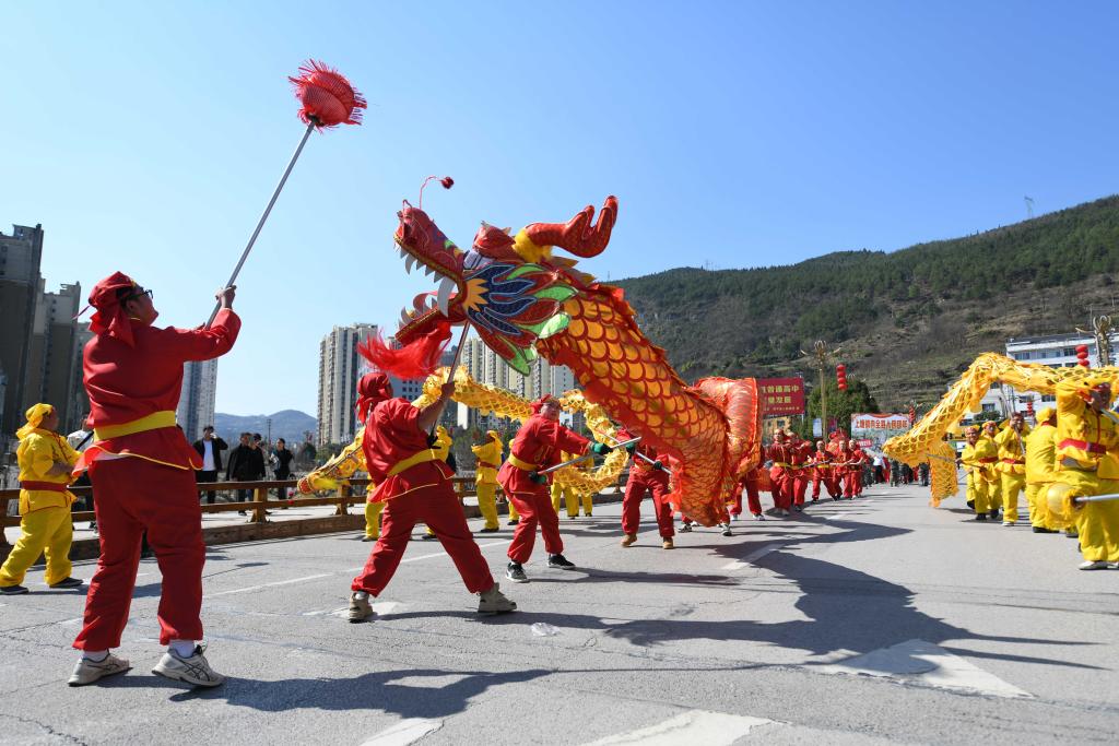 2月18日,贵州省黔东南苗族侗族自治州黄平县各乡镇群众身着盛装,欢聚一堂,举行舞龙、花灯、舞狮、巡游等传统民俗活动,祈盼新的一年风调雨顺、五谷丰登。据悉,每年农历正月初九,是黄平县传统龙灯会亮灯的日子,活动将持续到元宵节。