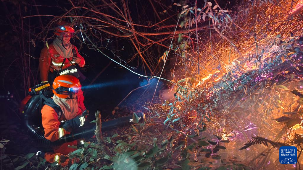 救援人员在贵州省毕节市的森林火灾现场救援(2月19日摄)。新华社发(嬴万光 摄)pagebreak