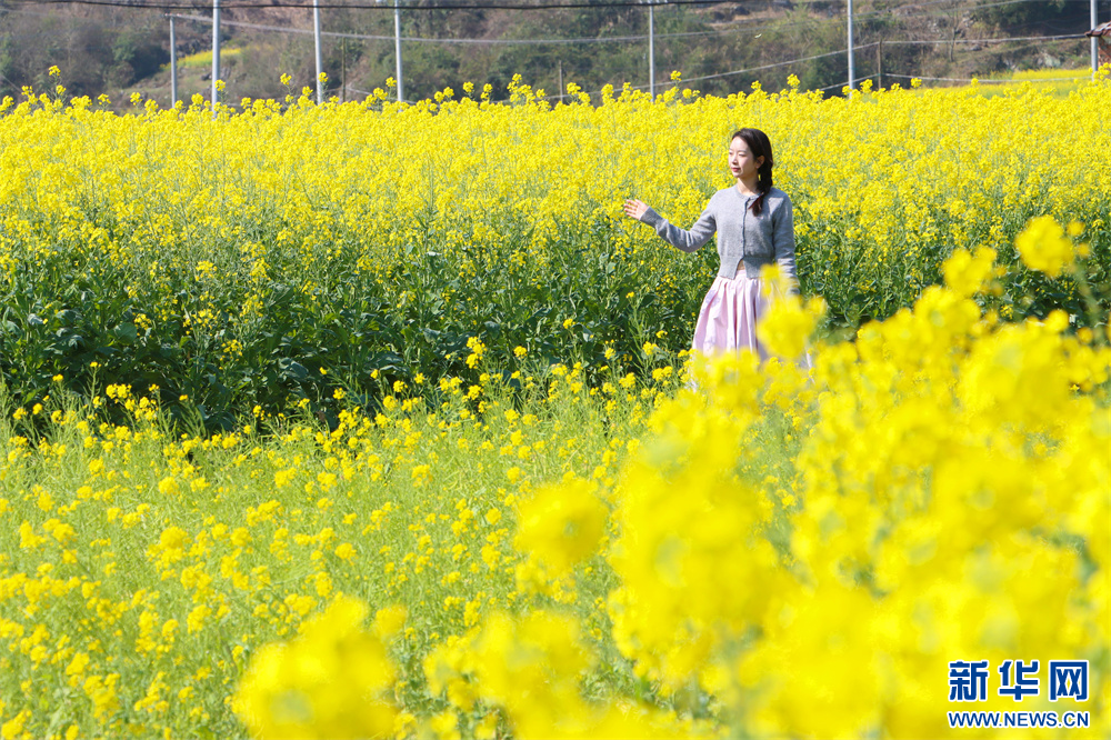 2月20日,游客在贵州省独山县下司镇三兴村的油菜花田赏花游玩。新华网发(张明坤 摄)pagebreak