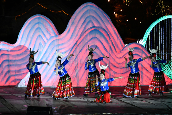 2月15日,贵州省凯里市下司古镇景区光影秀。(杨仁海 摄)