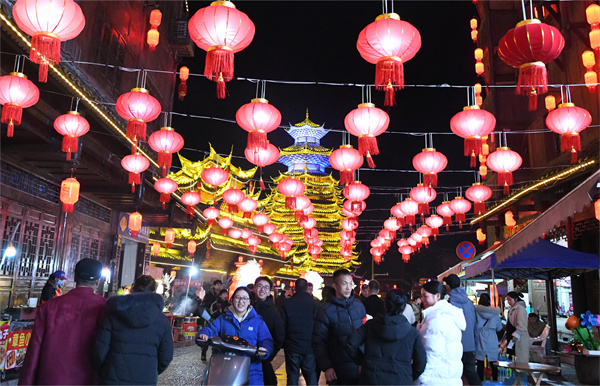 2月15日,游客在贵州省凯里市下司古镇景区观光游览。(杨仁海 摄)