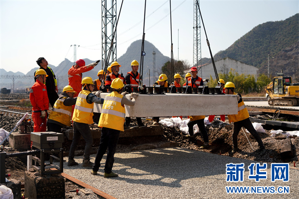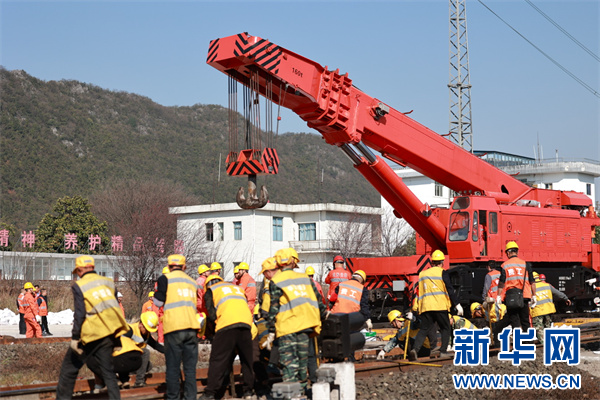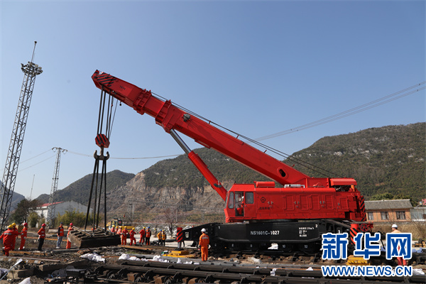图为吊装轨枕现场。新华网发(国铁成都局供图)
