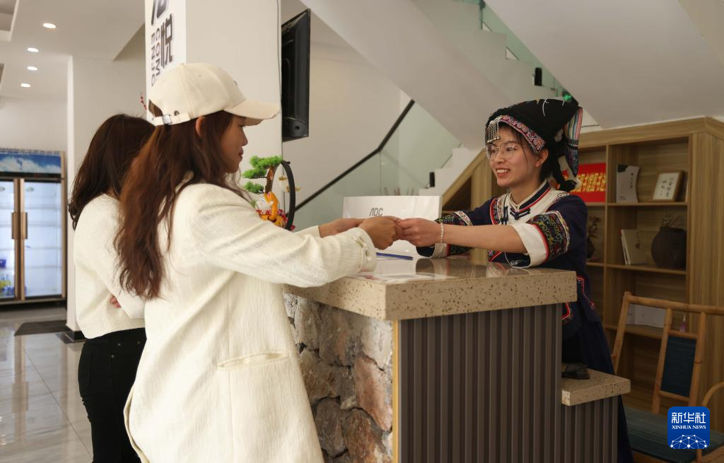 3月7日,游客在大井村大小井景区一家民宿登记入住。新华社发(张良静 摄)