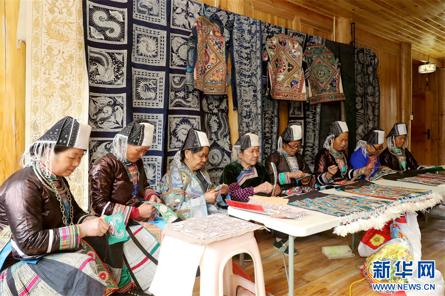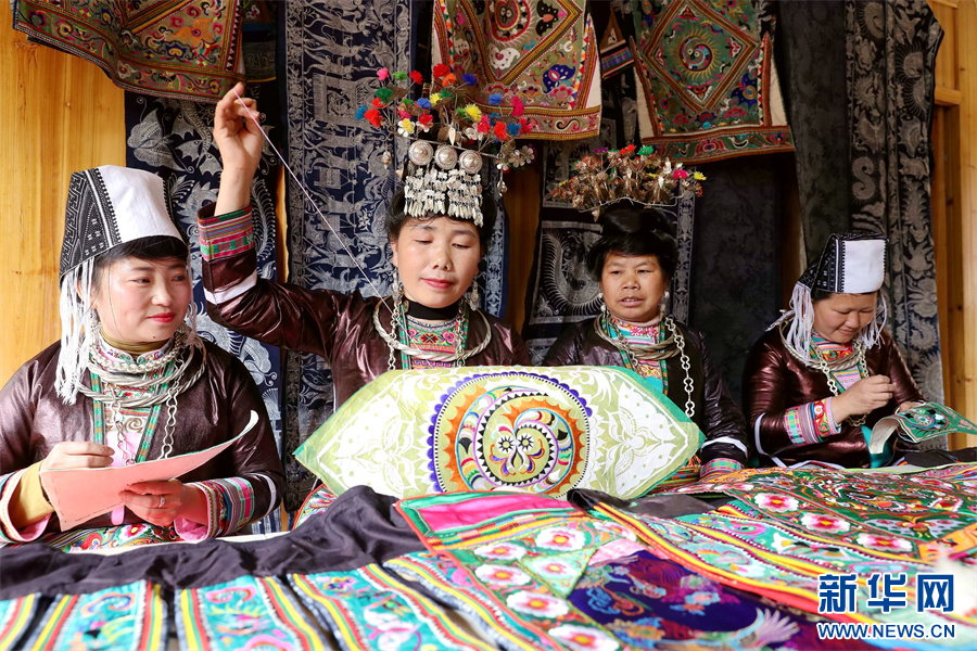 3月6日,在贵州省黔东南苗族侗族自治州榕江县三江乡冷衣村,苗族妇女在刺绣。新华网发(李长华 摄)pagebreak