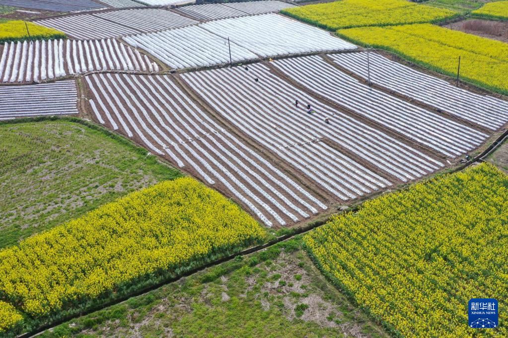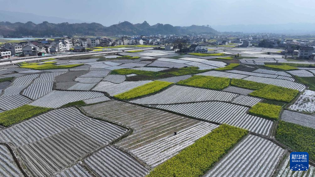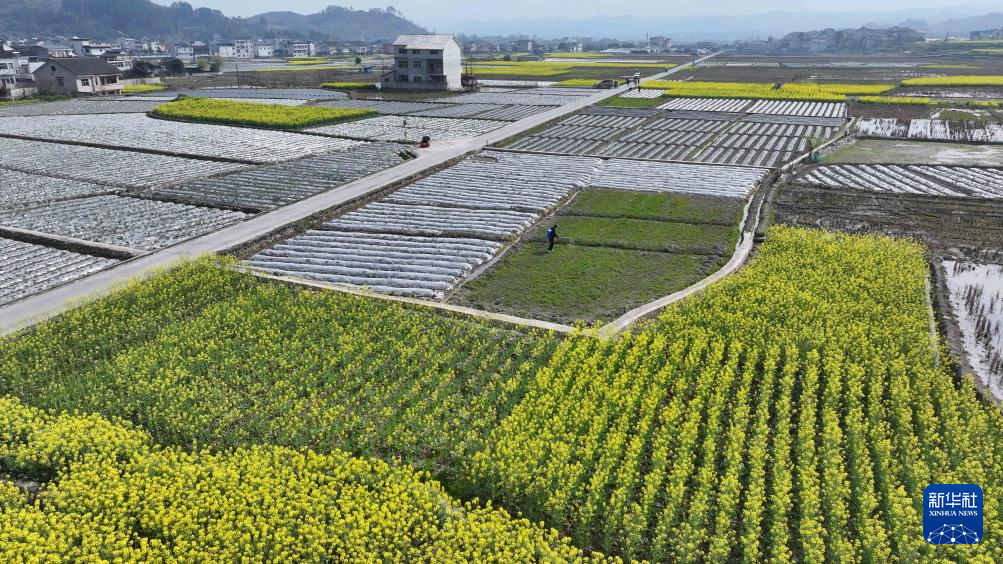 3月9日,村民在贵州省黔东南苗族侗族自治州黄平县旧州镇东门村田间劳作(无人机照片)。新华社发(史传鸿 摄)pagebreak