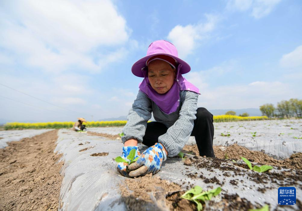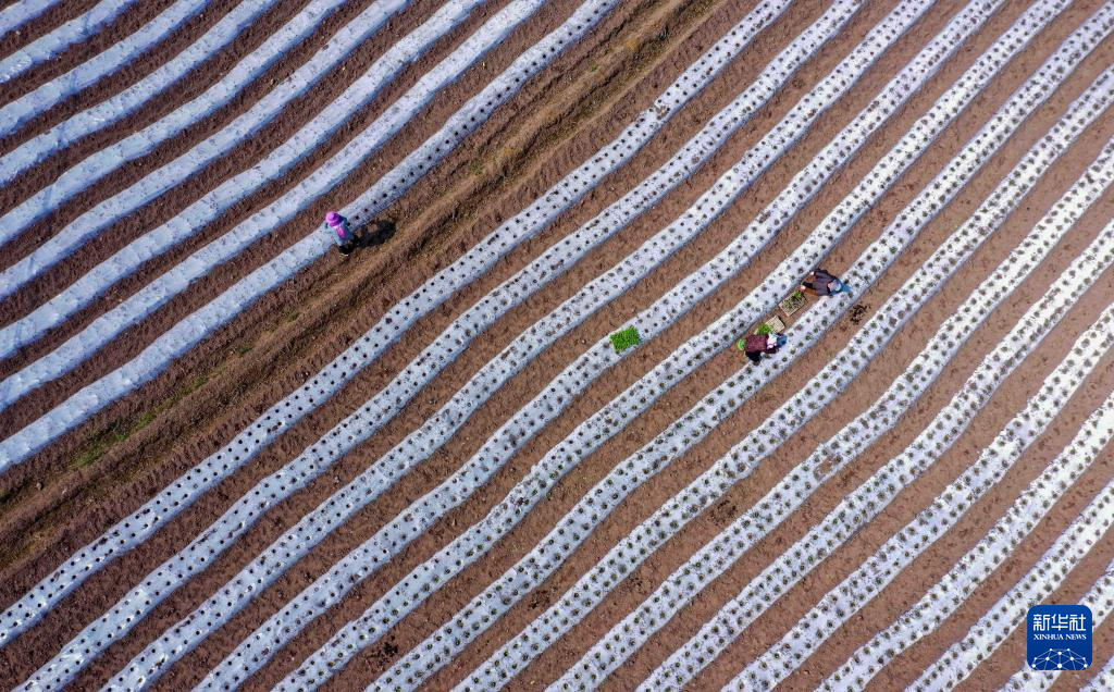3月9日,村民在贵州省黔东南苗族侗族自治州黄平县旧州镇东门村移栽菜苗。新华社发(陈孝新 摄)pagebreak