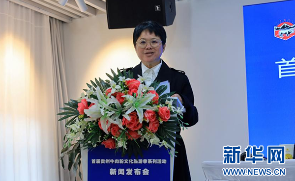 贵州黄牛产业集团党委委员、副总经理王业婷发言。新华网发(杨野 摄)