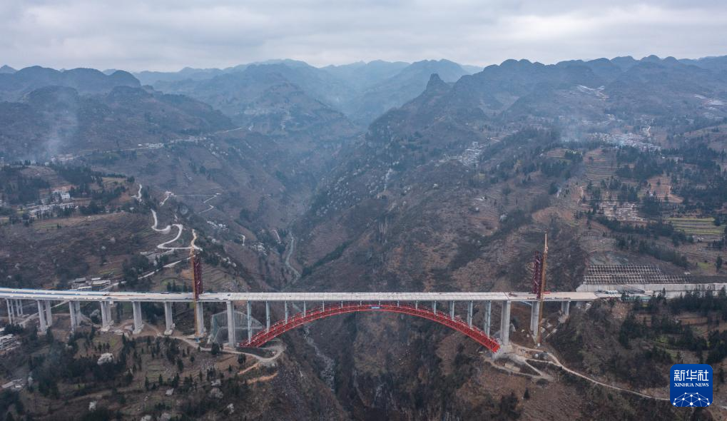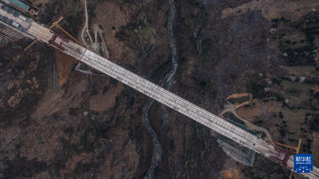 纳晴高速白水河大桥顺利完成桥面安装(3月19日摄,无人机照片)。新华社记者 陶亮 摄pagebreak