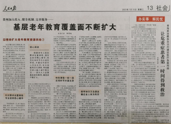(图为:《人民日报》2024年7月19日刊载标题为“贵州加大投入、健全机制、完善服务—基层老年教育覆盖面不断扩大”文章)