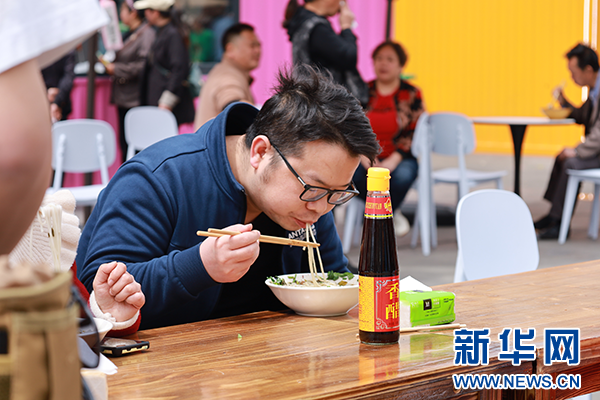 市民在“百味嗦粉街”上嗦粉。新华网发(杨野 摄)