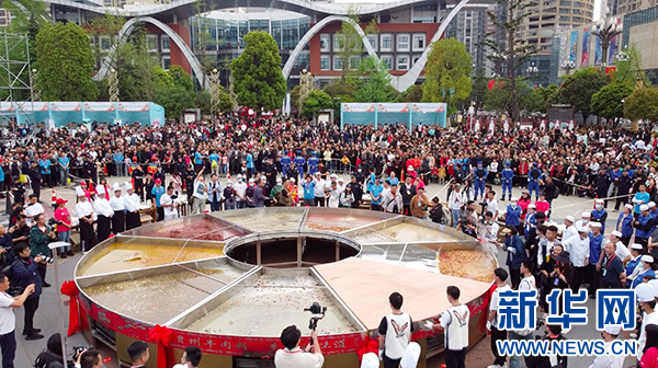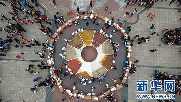 直径达9米的圆形汤锅。新华网发(杨野 摄)