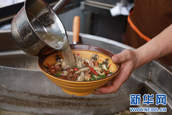 现场制作的牛肉粉。新华网发(杨野 摄)
