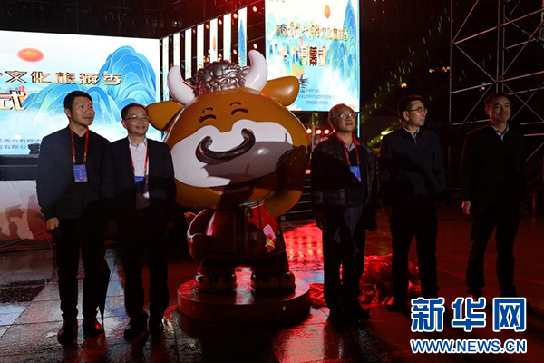 吉祥物“福牛黔黔”揭幕亮相。新华网发(杨野 摄)