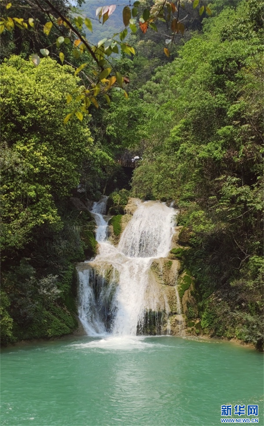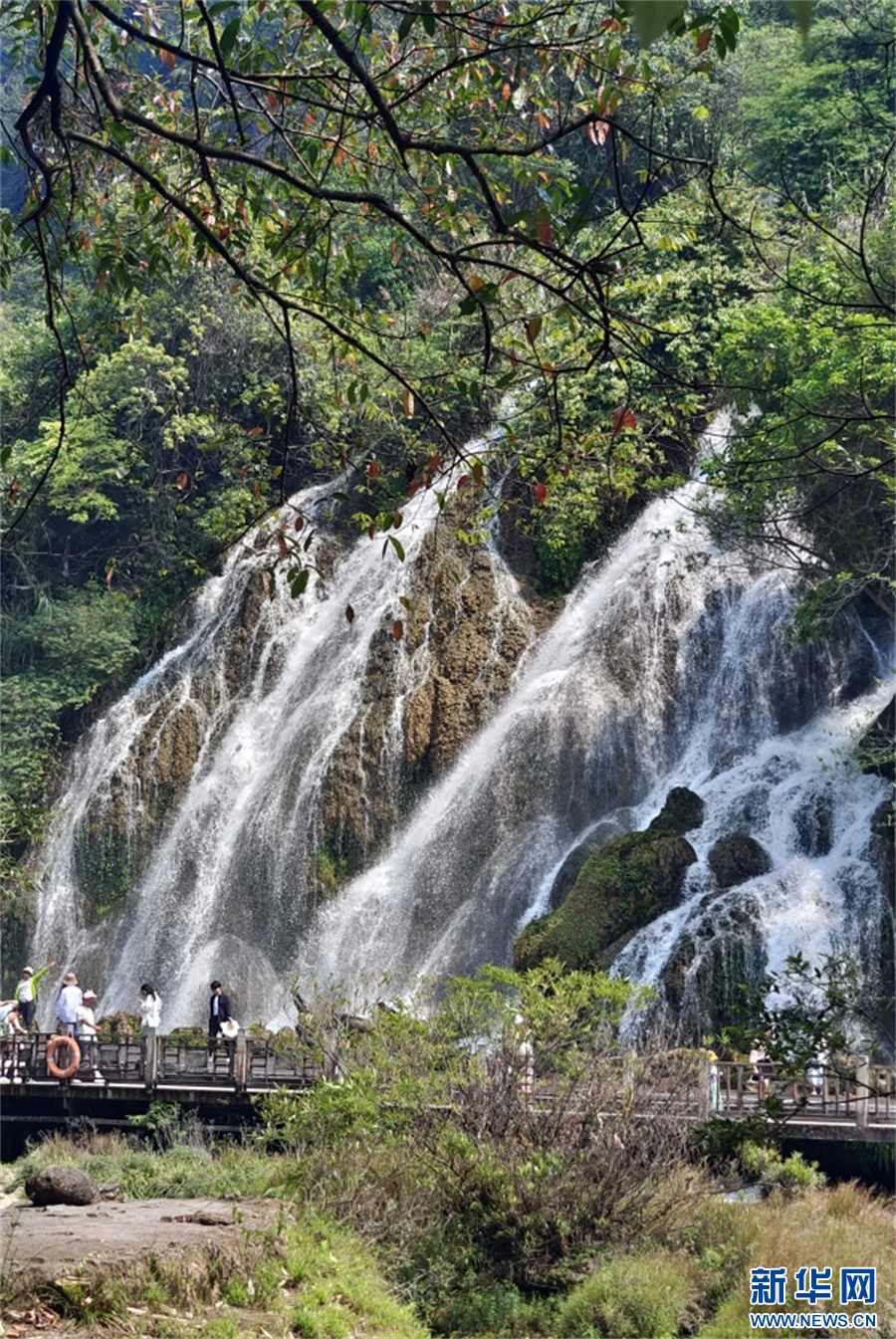 小七孔景区的瀑布(4月3日摄)。新华网 邓娴 摄pagebreak