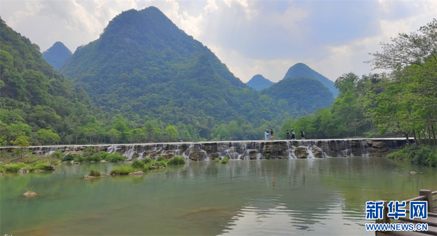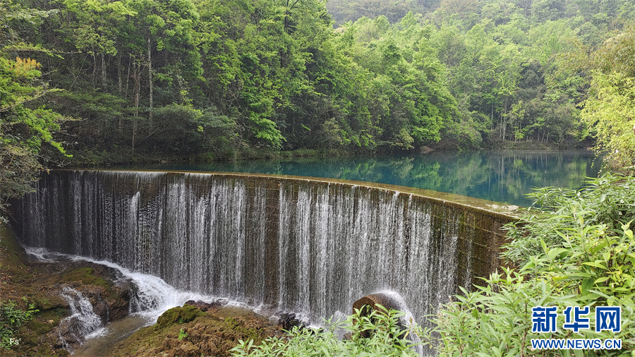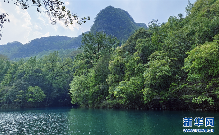 4月3日,小七孔景区青山叠翠、碧波荡漾。新华网 邓娴 摄pagebreak