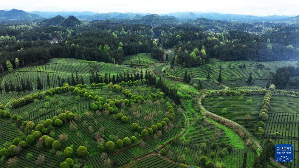 4月6日拍摄的凤冈县永安镇田坝社区茶叶基地一景(无人机照片)。新华社记者 杨楹 摄pagebreak