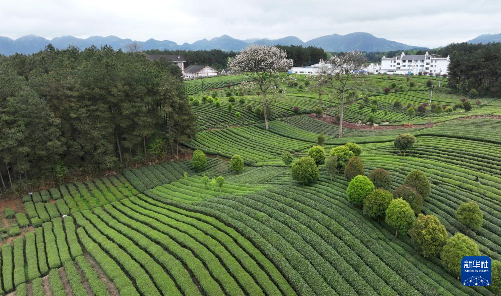 时值春茶采摘旺季,贵州省遵义市凤冈县50多万亩茶叶长势喜人,采茶的村民忙碌在高低错落的茶园,勤劳的身影描绘出生机勃勃的美丽画卷。
