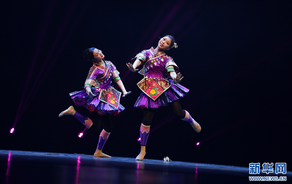 4月8日,委培班毕业生进行苗族女子双人舞展示。新华网 卢志佳 摄pagebreak