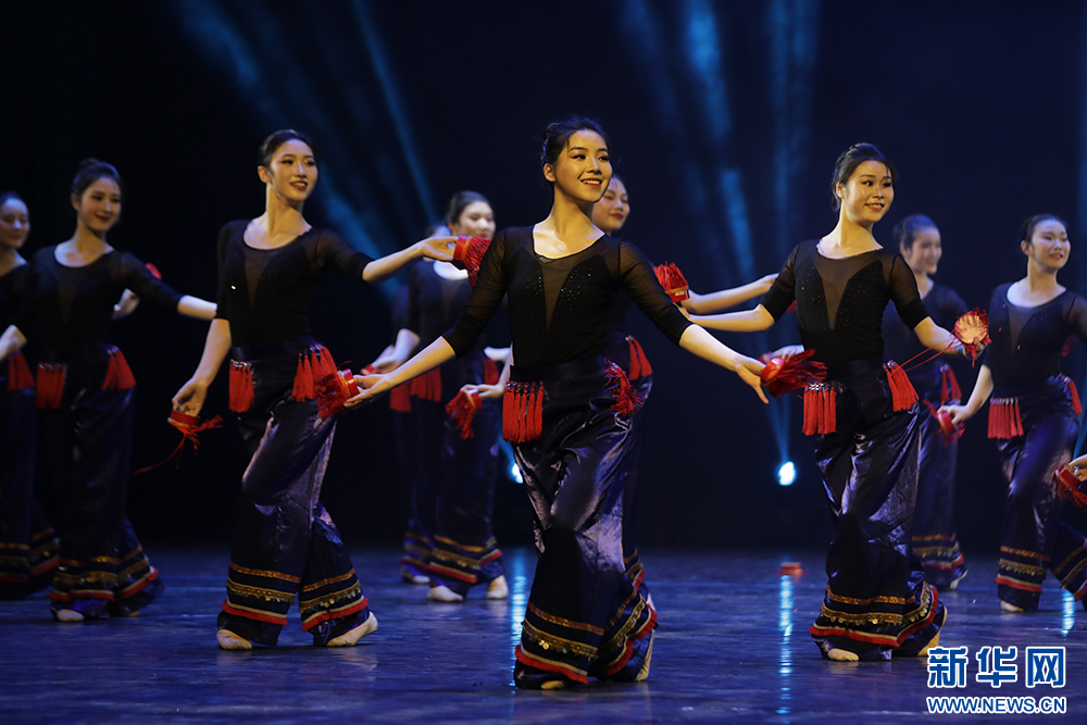 4月8日,委培班毕业生进行壮族女子独舞展示。新华网 卢志佳 摄pagebreak