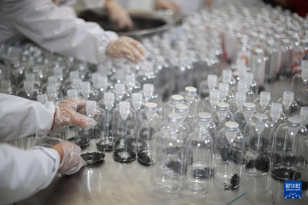 4月10日,工人在贵州省丹寨县金钟经济开发区一家茶企的生产车间包装冷泡茶。新华社发(杨武魁 摄)pagebreak