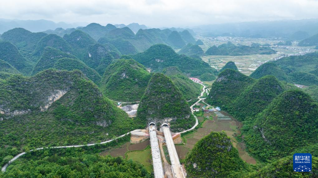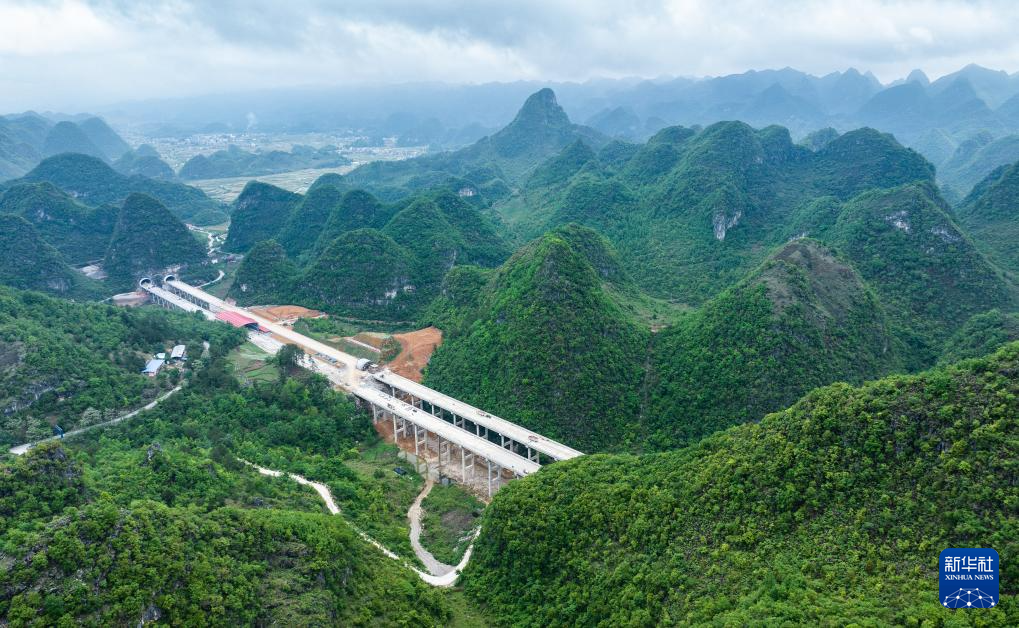 4月18日拍摄的建设中的贵平高速四寨至云阳关路段(无人机照片)。新华社记者 陶亮 摄
